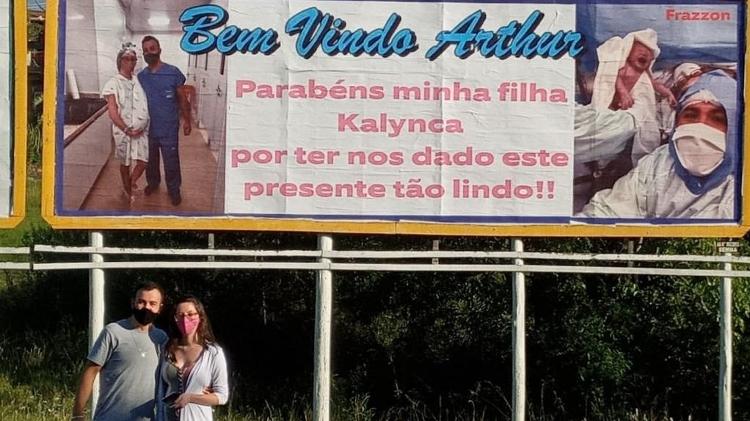 E não só a família: a última demonstração de afeto de Rodrigo foi compartilhada com toda a cidade de Caxias do Sul (RS). Ele colocou um outdoor em uma movimentada avenida da cidade para surpreender sua filha Kalynca, que, aos 22 anos, também acaba de se tornar uma jovem mãe. "Foi uma grande surpresa para todos nós, não esperávamos que tão cedo fôssemos receber o presente que mudaria as nossas vidas por completo", diz Kalynca. "Meu pai ficou bobo, diz ser a maior realização da vida dele. É um grande vovô".