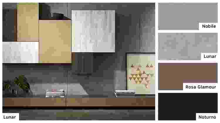 O estilo Criativo também apresenta o padrão Lunar, que traz o efeito contemporâneo das pedras e do concreto.