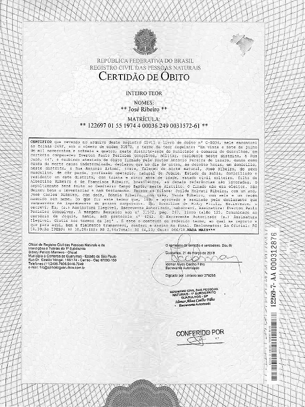 Agora, porém, tenho em mãos uma nova informação: o cartório em Guarulhos onde a morte de José foi registrada.