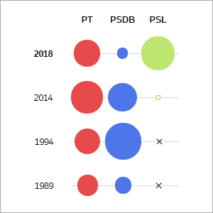 Entre 2002 e 2014, nenhum dos candidatos que chegou ao segundo turno das eleições ostentou taxas de rejeições que superaram os 33%. Desta vez, Jair Bolsonaro (PSL) e Fernando Haddad (PT) chegaram ao segundo turno com rejeições bem acima desse patamar: 44% e 41%, respectivamente.