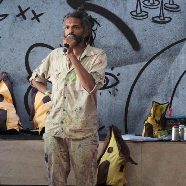 “Me apaixonei perdidamente pela arte. Me apaixonei perdidamente pela rua. E a partir de então saí todos os dias pra grafitar”. Conhecido pelas casinhas amarelas que espalha por São Paulo e pelos jogos de palavras com conjugações da palavra “ver”, Mauro (@reveracidade) dividiu com a plateia do TNT Lab sua vivência nas ruas da cidade, que incluem episódios de violência policial e até uma detenção recente por conta do programa Cidade Linda. “A gente sente que é importante continuar a resistência”, diz.