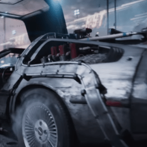 A corrida inicial de carros, com Mach 5, Batmóveis e DeLoreans, é incrível. Além da clássica referência ao animê "Speed Racer", é possível também perceber pitadas de "Need For Speed", "Carmageddon" e "Mario Kart", com os personagens fugindo do gorilão de "King Kong" e do T-Rex de "Parque dos Dinossauros".