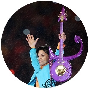 Já imaginou Prince tocando a clássica canção "Purple Rain" (chuva roxa) debaixo de chuva com uma guitarra...roxa? Aconteceu no Super Bowl de 2007.