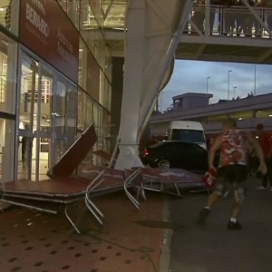 Após a quarta derrota consecutiva, a torcida do Internacional protagonizou um quebra-quebra nos arredores do Beira-Rio. Além de vidros quebrados da área VIP do estádio, ao menos um carro foi depredado.