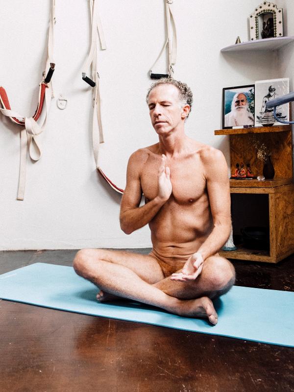 Na posição "flor de lótus", sentado de pernas cruzadas, Fred Schinke, um organizadores do encontro, acalmou minha alma constrangida. Garantiu que a vergonha de estar pelado passaria em alguns minutos. O propósito da nude ioga era justamente naturalizar a nudez, nos livrando dessa máscara diária: as roupas.