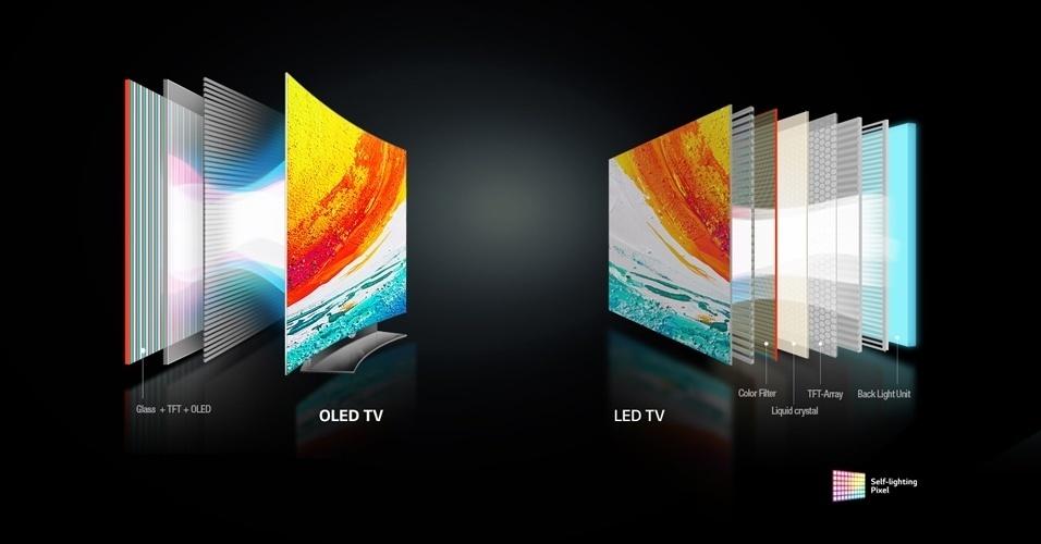 OLED significa Organic Light-Emitting Diode. Na prática, isso quer dizer que o painel OLED é formado por pixels individuais que se autoiluminam, dispensando o painel de iluminação traseiro. Assim, quando é necessário produzir áreas completamente escuras na imagem, os pixels são capazes também de se desligar completamente.