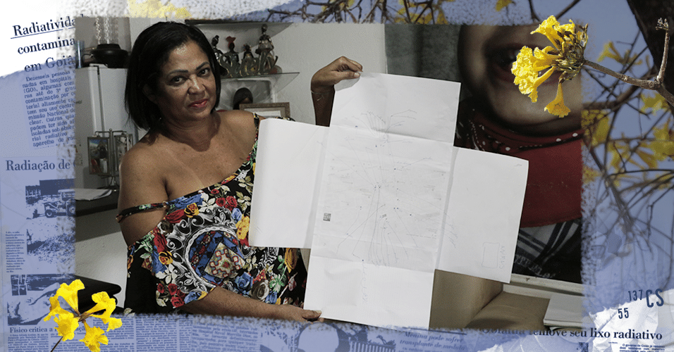 Ela tem um mapa, feito à mão, com as vítimas de câncer residentes nos setores Aeroporto e Ferroviário, os mais atingidos pela radiação. Ela aponta 23 casos. “São os moradores daqui, que não saíram daqui. Não vieram fazer pesquisa [epidemiológica, que atesta a incidência maior ou menor de doenças] deles. Nunca foram na fundação, nem sabem onde é. Enquanto as vítimas diretas eram atendidas, eles continuaram aqui. Estavam expostos [à radiação].”