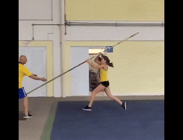Depois, conta os treinos. São sete dias na semana e entre dez e 12 sessões de treinamento. O número varia em cada etapa de preparação. Hoje, a poucos meses para os Jogos Olímpicos, está mais próxima dos dez. Mas nem por isso o esforço é menor. Ela divide esse número entre treinos específicos de salto com vara, um treinamento geral de atletismo, musculação e movimentos de ginástica.