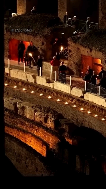 Papa Leão 14 carrega a cruz durante toda a procissão da Via Sacra em Roma